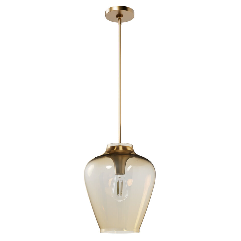Contemporary / modern alturas gold 1-light pendant light with clear amber iridescent glass shade