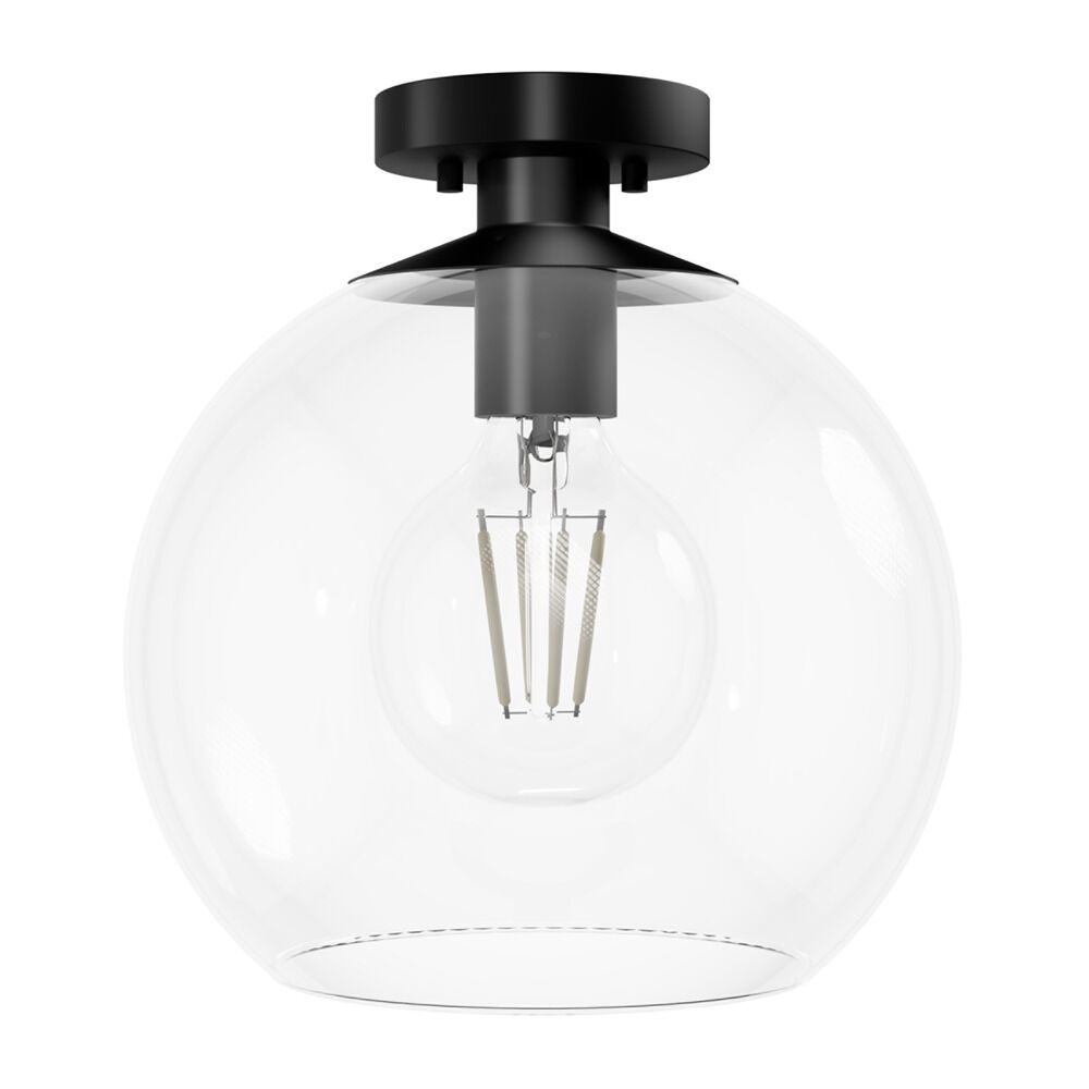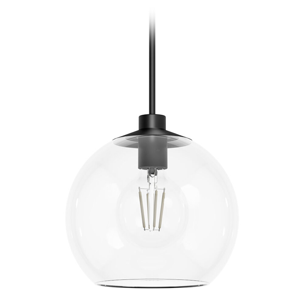 Mid-century modern matte black 1-light pendant light with clear glass shade