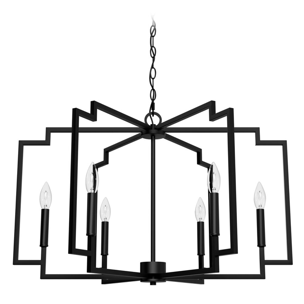 Transitional matte black 6-light chandelier