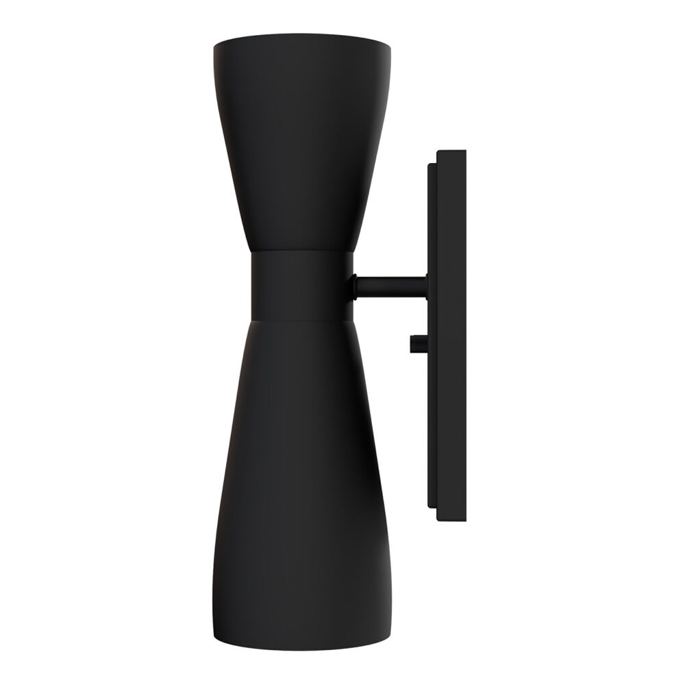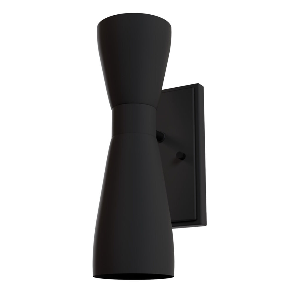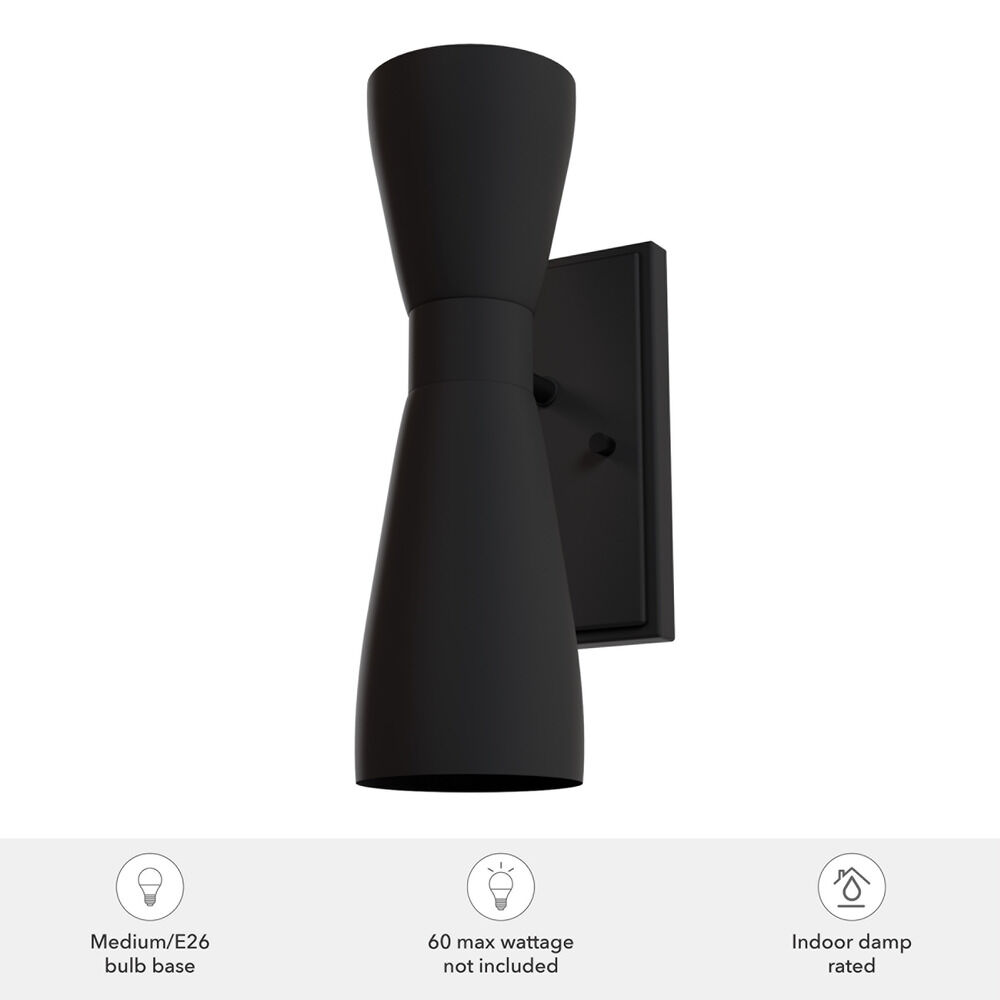Mid-century modern matte black 2-light sconce with matte black metal shade