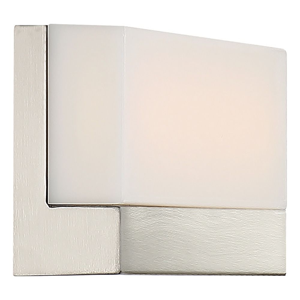 Contemporary / modern brushed nickel 1-light bathroom light with white acrylic shade