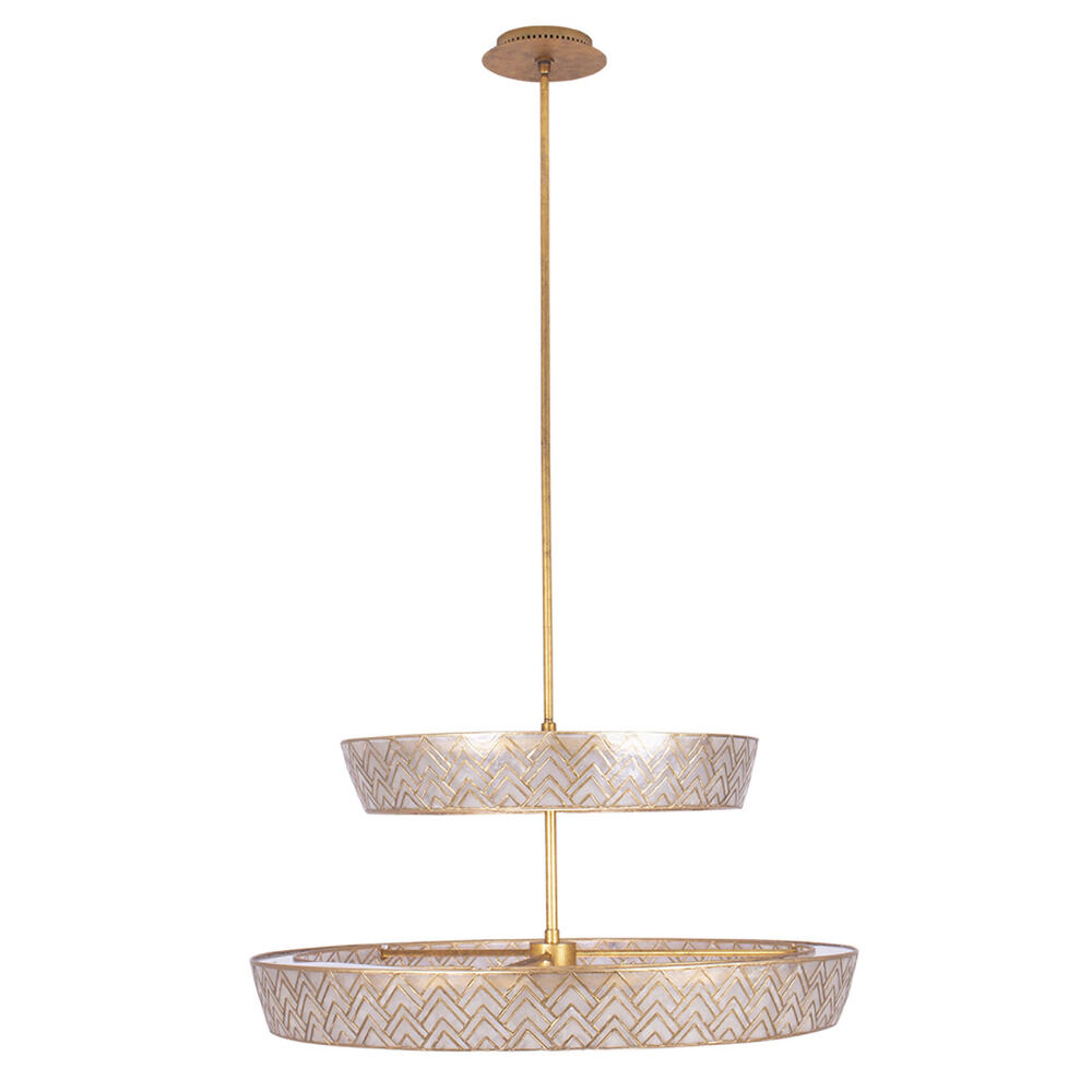 Art deco oxidized gold leaf 2-light pendant light with capiz shell shade