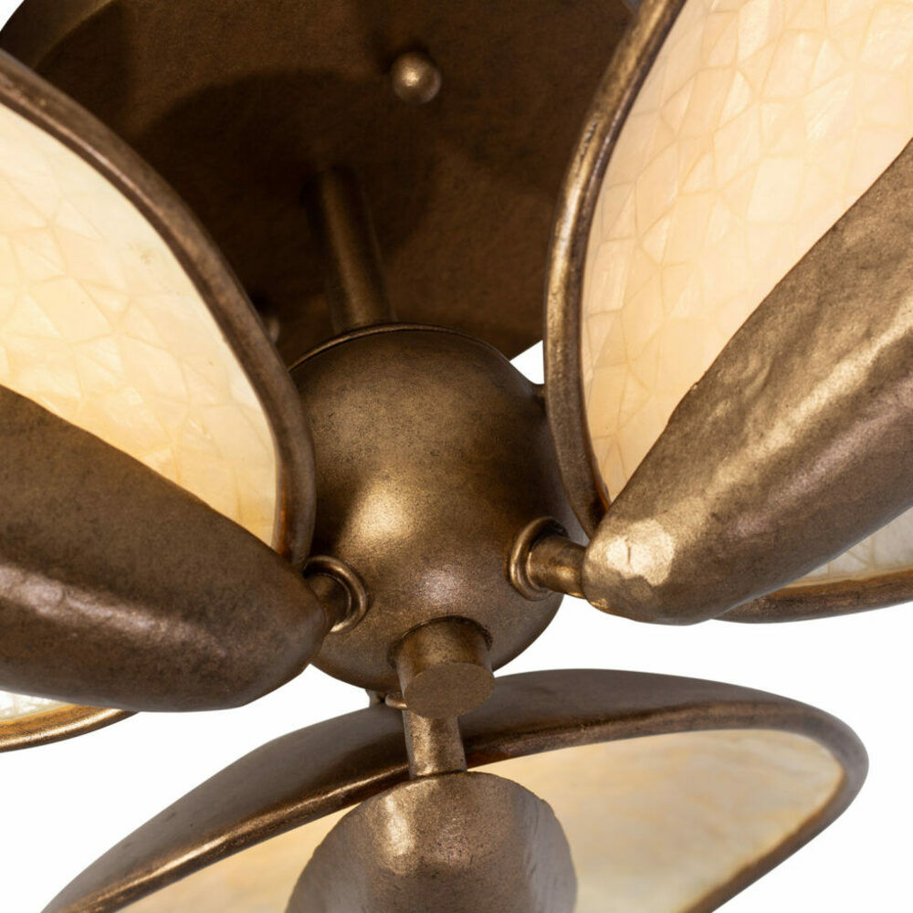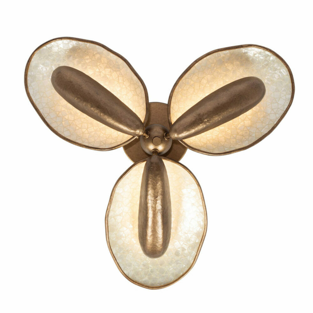 Innovatively designed with replaceable, driverless LED technology, the Spat Flushmount provides efficient, indirect illumination that reflects gently off the shell-like interior. The result is a warm, radiant atmosphere that feels both modern and naturally inspired. Finished in a Pearlized Antique Brass, this piece brings a sense of understated luxury to any room. Crafted from high-quality, responsibly sourced materials, it embodies Kalco Lighting's commitment to sustainability, artistry, and timeless design.