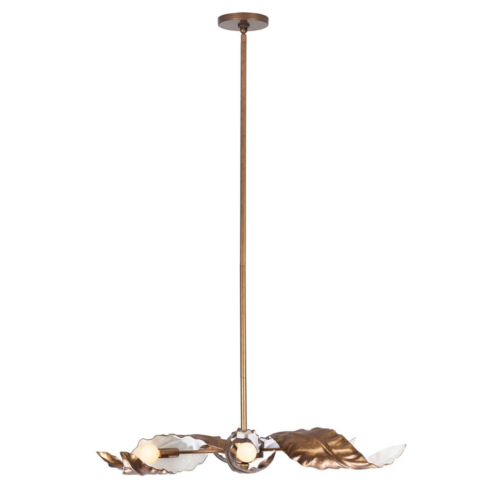 The following are detailed specifications about the Kalco Lighting Spira Pearlized Antique Brass & White Chandelier.