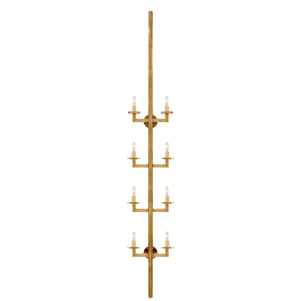 Update your living space with Kelly Wearstler's Liaison Statement Sconce by Visual Comfort. The Liaison features a long, vertical style - simple yet sophisticated. This fixture showcases an Antique-Burnished Brass finish and no glass - Simply bare light bulbs. The Liaison requires eight 60W maximum candelabra base C11 light bulb. Clear or vintage bulbs are recommended. This fixture is rated for Damp Location.