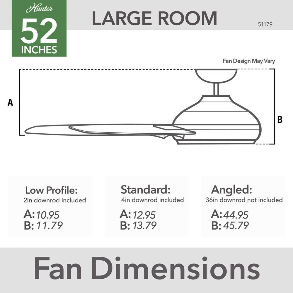 The following are detailed specifications about the Kennicott 52-Inch Outdoor Fan in Matte Silver by Hunter Fan Company.