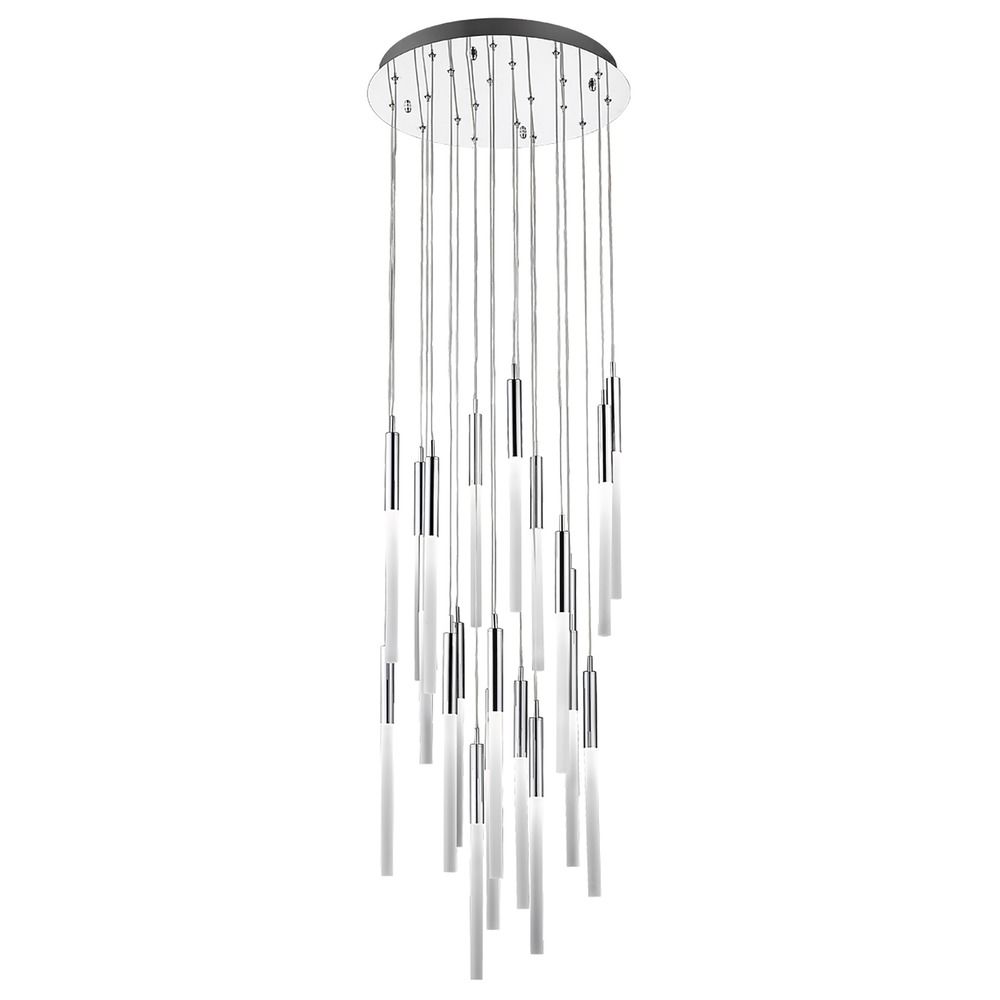 Contemporary / modern polished nickel 21-light pendant light with frosted white glass shade