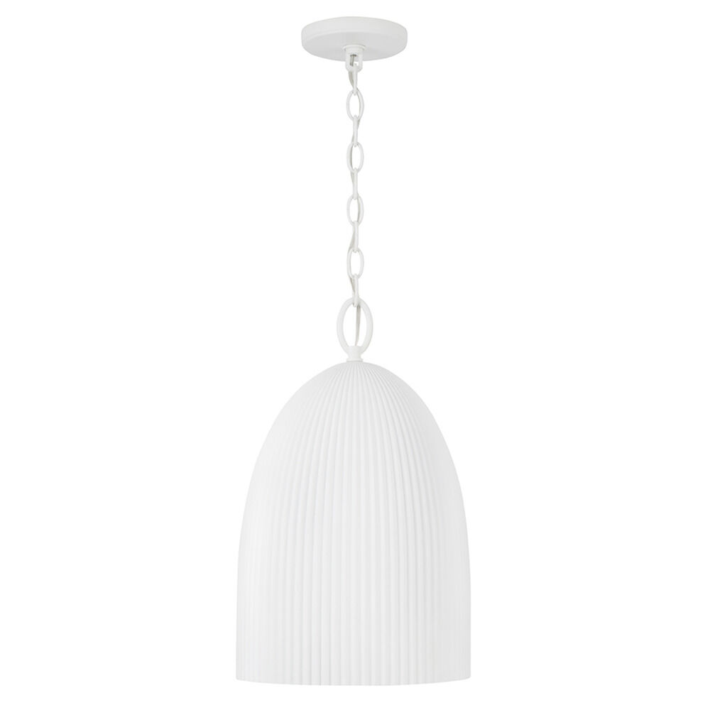 The Mallory Pendant in Ceramic White by Capital Lighting brings artisan craftsmanship and timeless elegance to interior spaces. Its handcrafted fluted ceramic shade creates visual depth with clean lines and sculptural texture, while the curved silhouette adds graceful balance. The hand-painted White finish enhances the design with a fine, sand-like texture, giving the piece a tactile quality that elevates its understated sophistication.