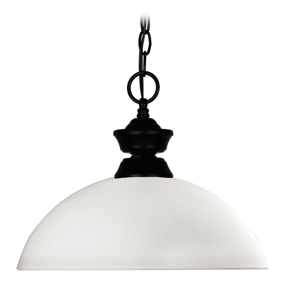 Traditional matte black 1-light pendant light with matte opal glass shade
