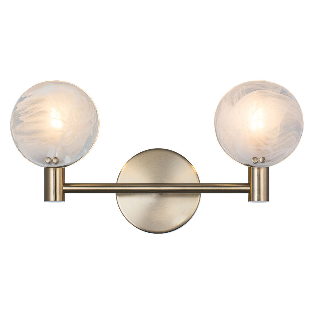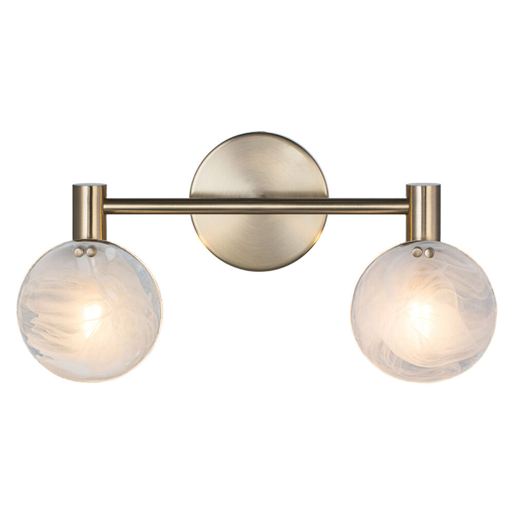 Mid-century modern champagne gold 2-light bathroom light with hand blown white stri� disc glass shade