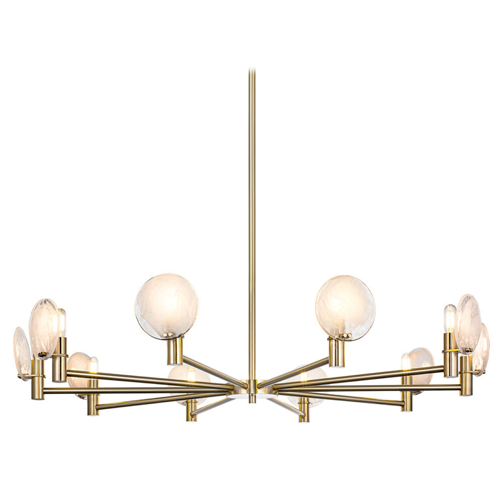 Mid-century modern champagne gold 10-light chandelier with hand blown white stri� disc glass shade