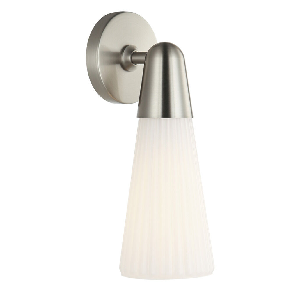 Contemporary / modern brushed nickel 1-light sconce with ribbed opal ribbed glass shade