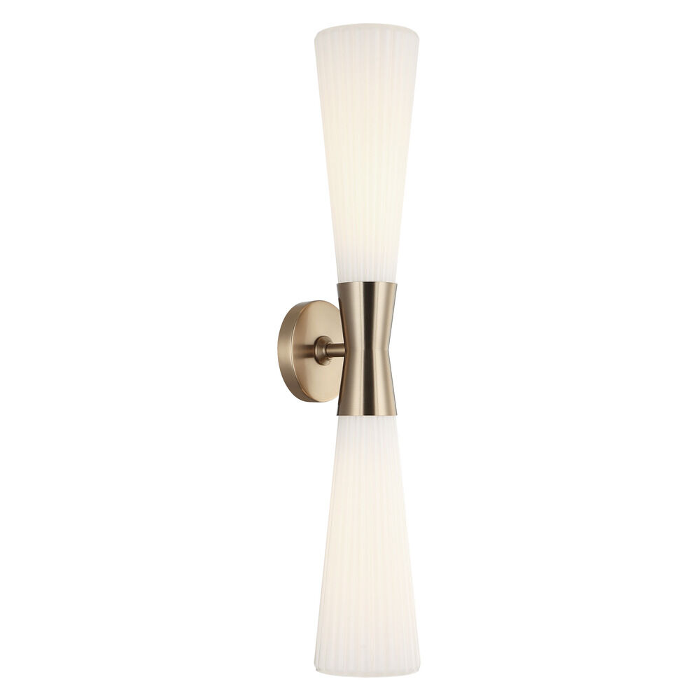 Contemporary / modern champagne gold 2-light bathroom light with ribbed opal ribbed glass shade