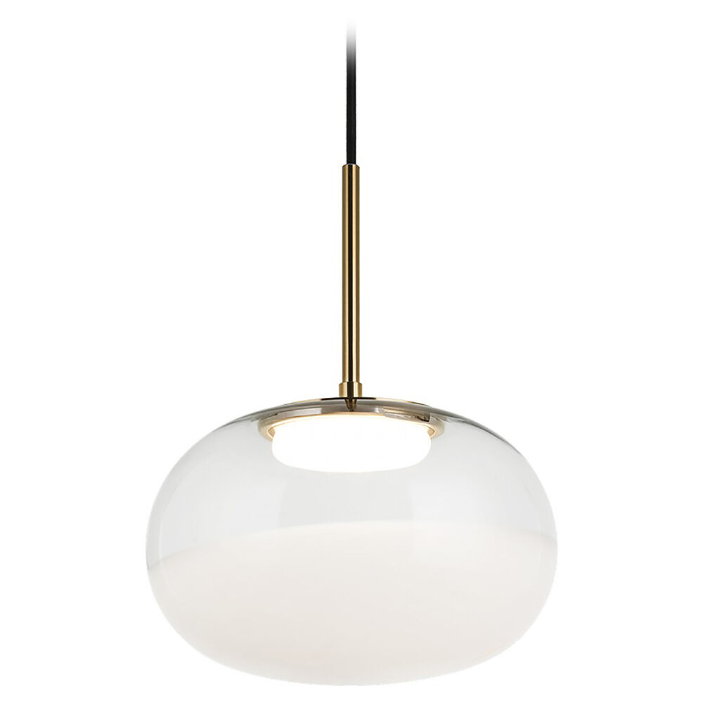 Contemporary / modern aged gold brass 1-light pendant light with hand blown,clear clear & white glass shade