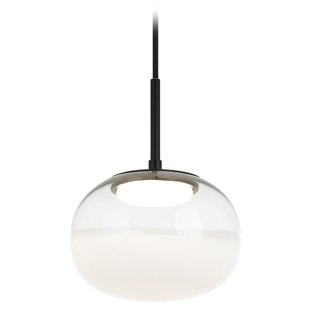Contemporary / modern matte black 1-light mini-pendant light with hand blown,clear clear & white glass shade