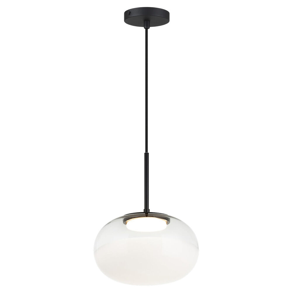 Contemporary / modern matte black 1-light pendant light with hand blown,clear clear & white glass shade