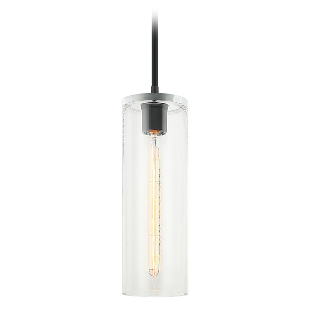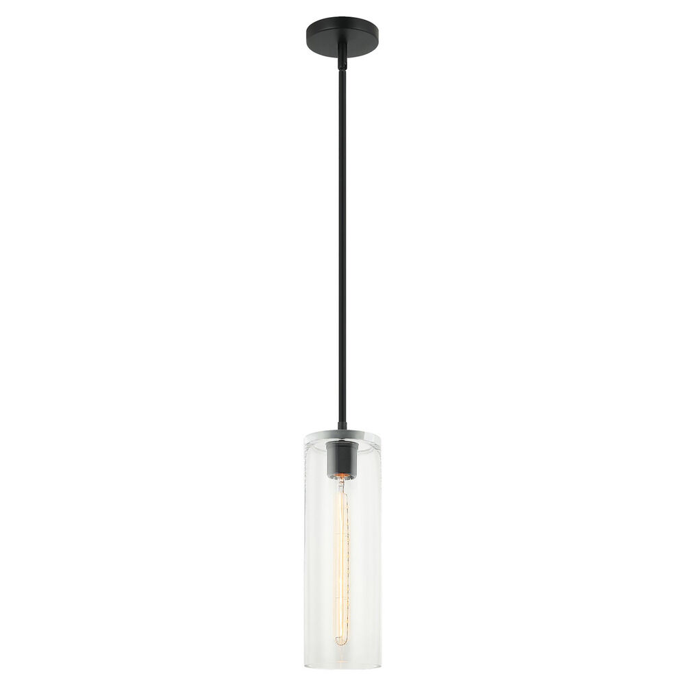 Contemporary / modern matte black 1-light mini-pendant light with clear glass shade