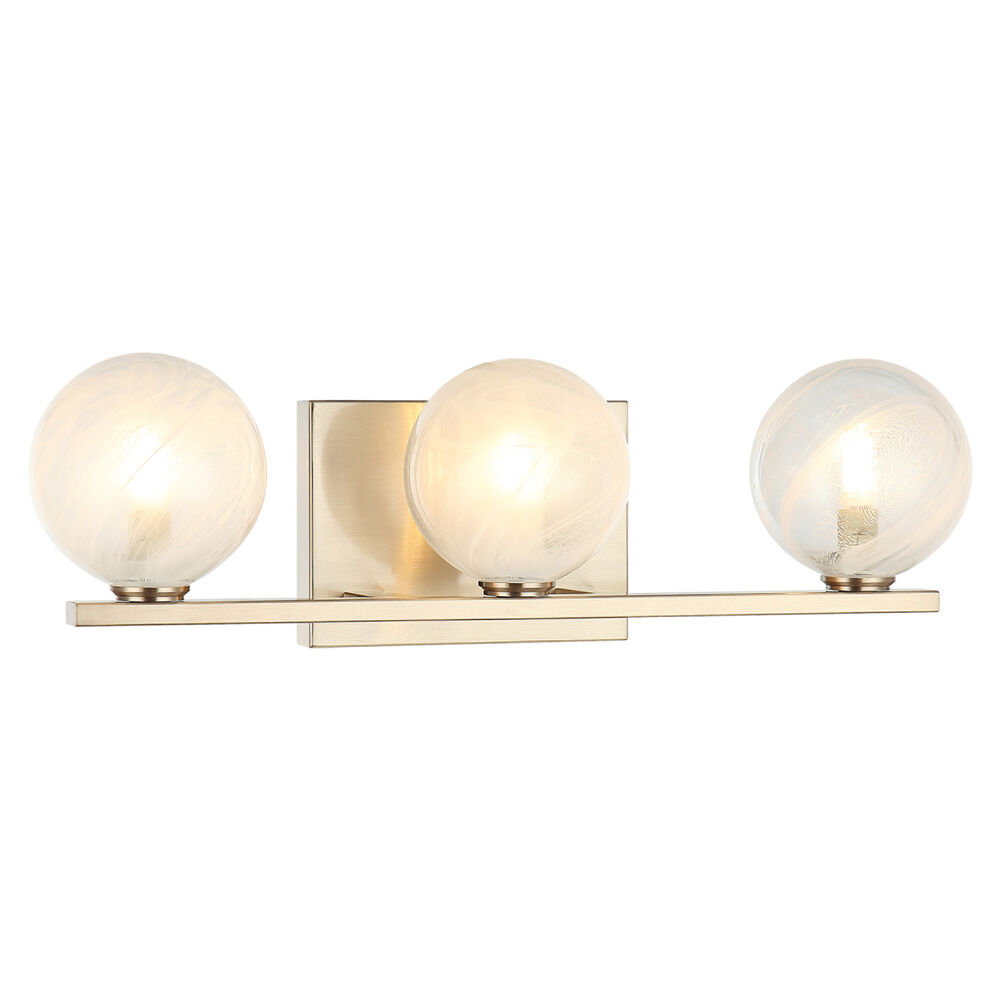 Contemporary / modern champagne gold 3-light bathroom light with hand blown white stri� glass shade