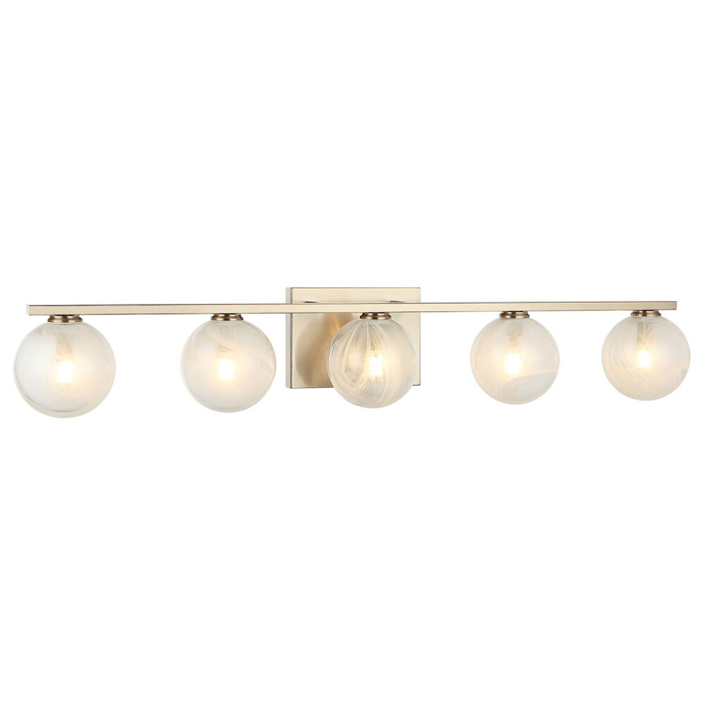 Contemporary / modern champagne gold 5-light bathroom light with hand blown white stri� glass shade