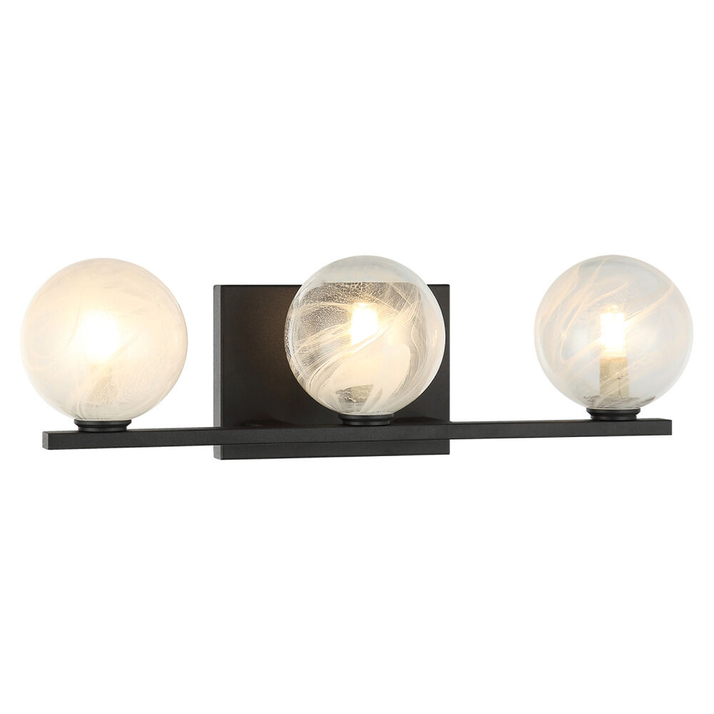 Contemporary / modern matte black 3-light bathroom light with hand blown white stri� glass shade