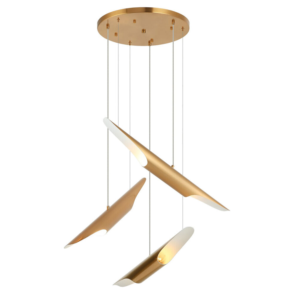 Matteo Lighting Matteo Lighting Stylus Aged Gold Brass Multi-Light Pendant with Cylindrical Shade C32416AG