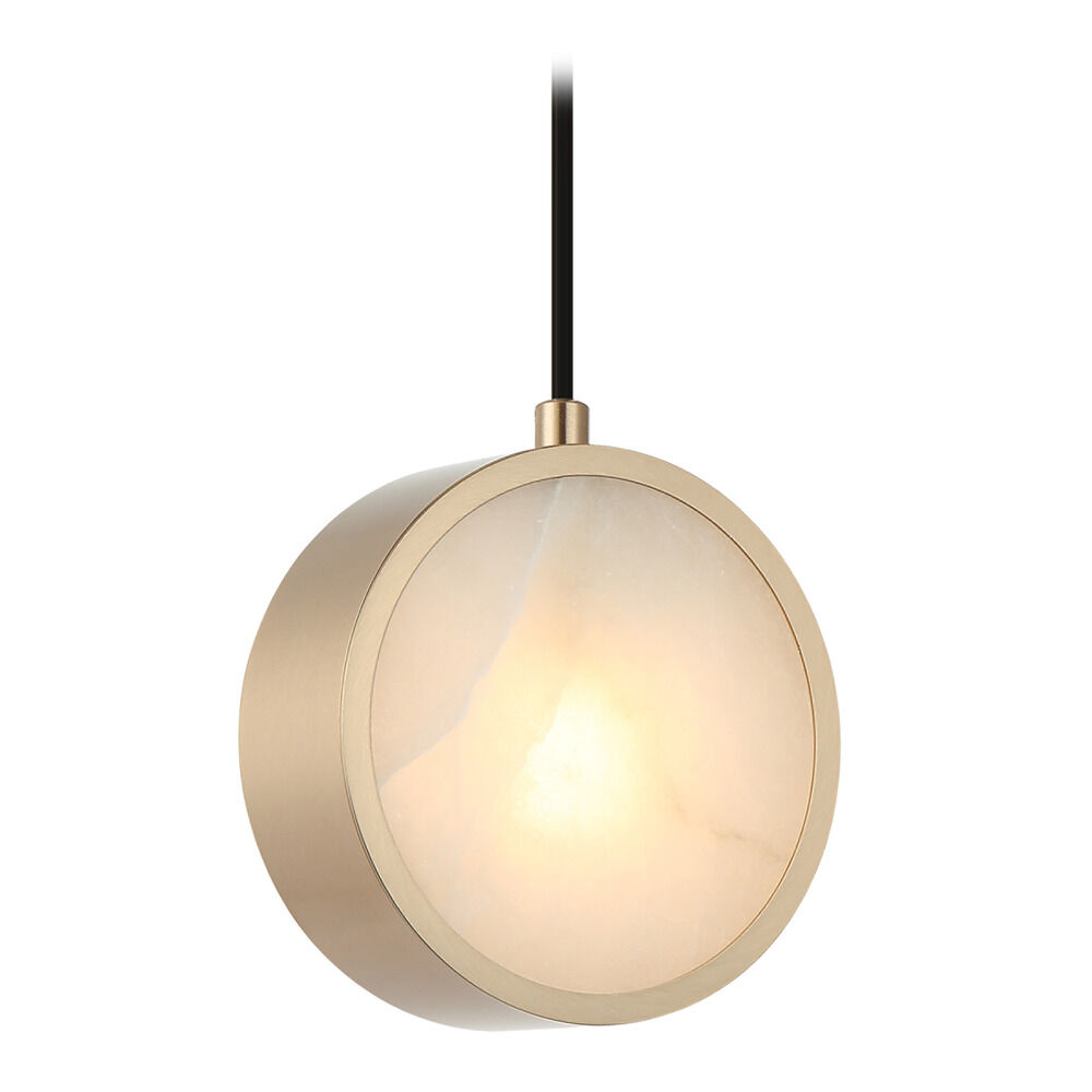 Mid-century modern champagne gold 1-light mini-pendant light with alabaster shade