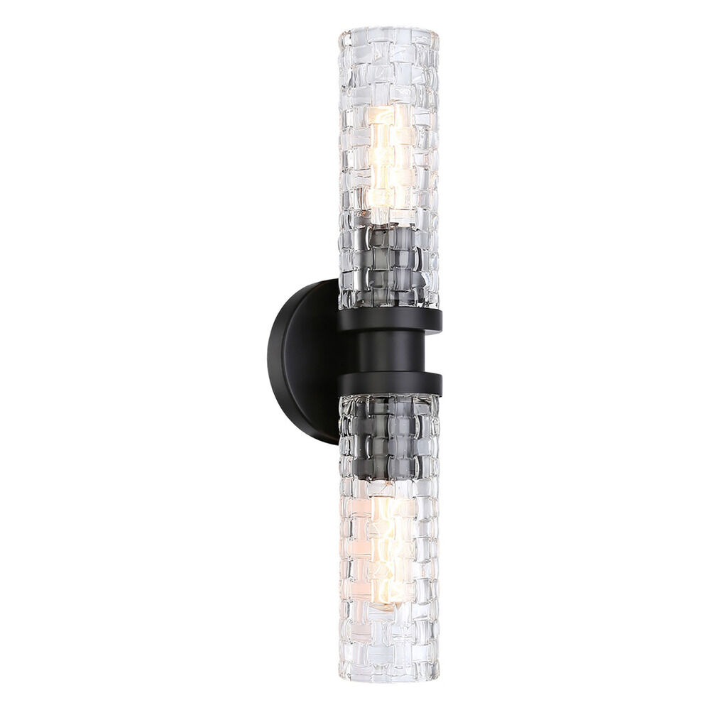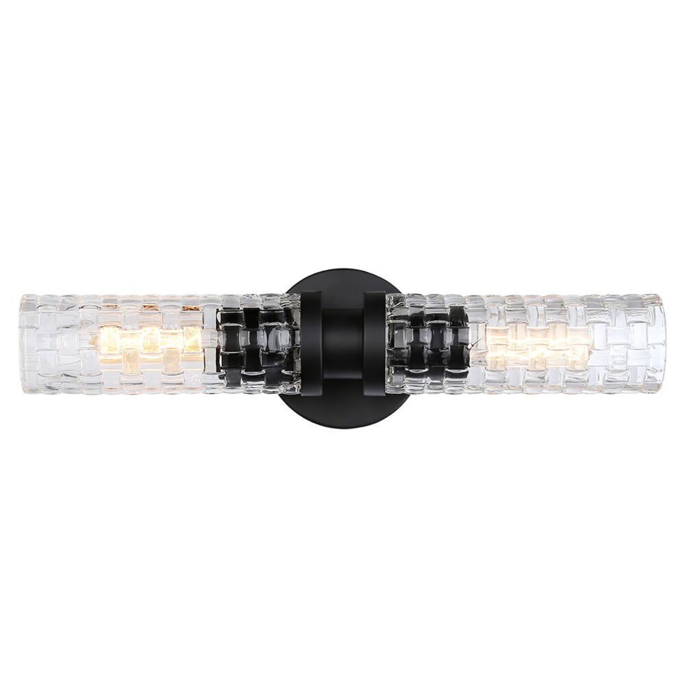 Contemporary / modern black 2-light bathroom light with clear woven patterned glass shade