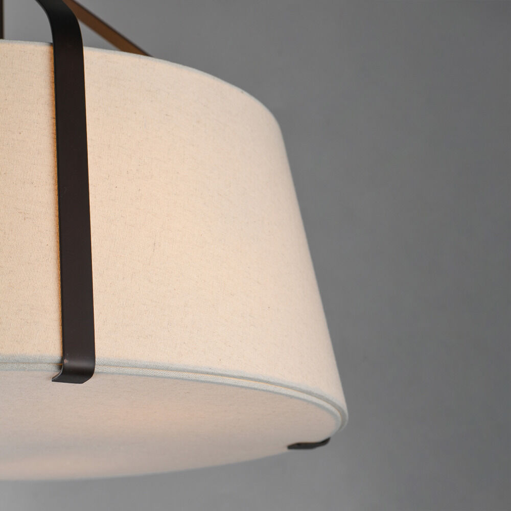 Transitional dark bronze 3-light pendant light with oatmeal linen shade