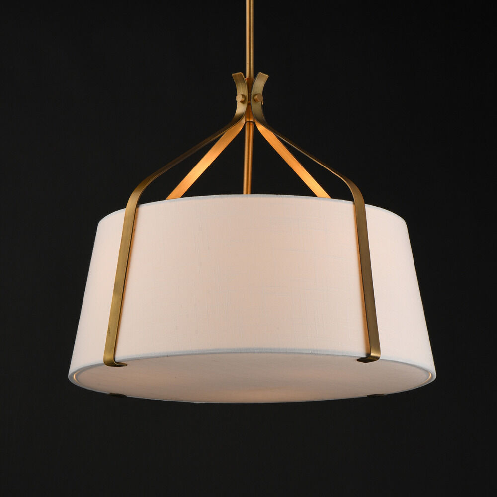 Transitional natural aged brass 3-light pendant light with crisp white linen shade