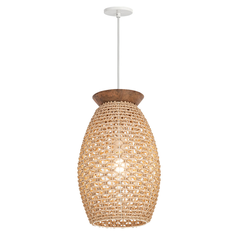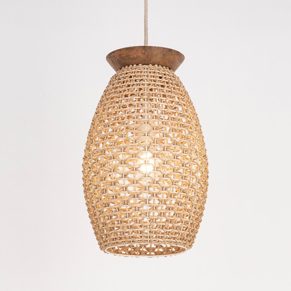 Country / cottage rich walnut 1-light pendant light with woven recycled paper wicker paper,wicker shade