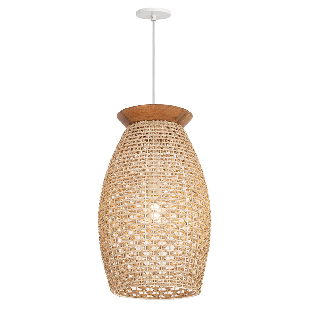 Country / cottage rich walnut 1-light pendant light with woven recycled paper wicker paper,wicker shade