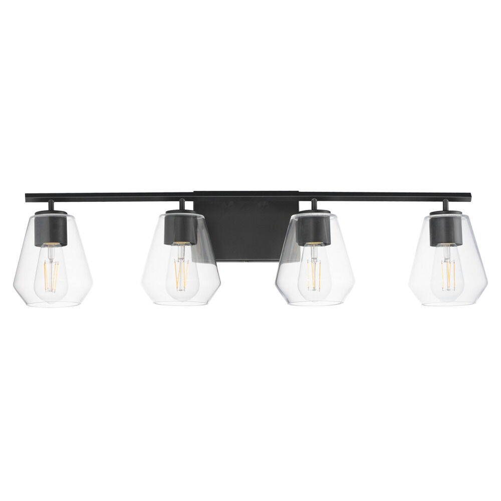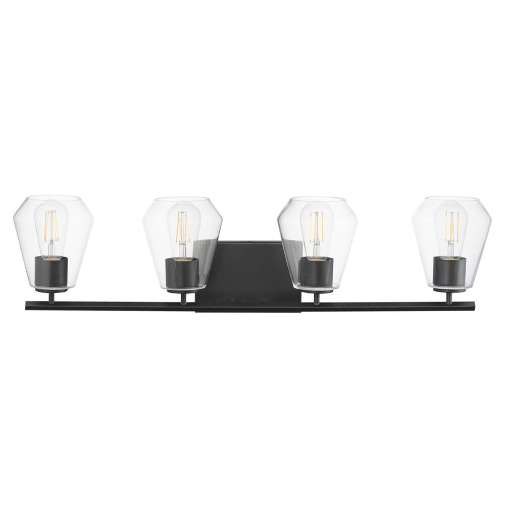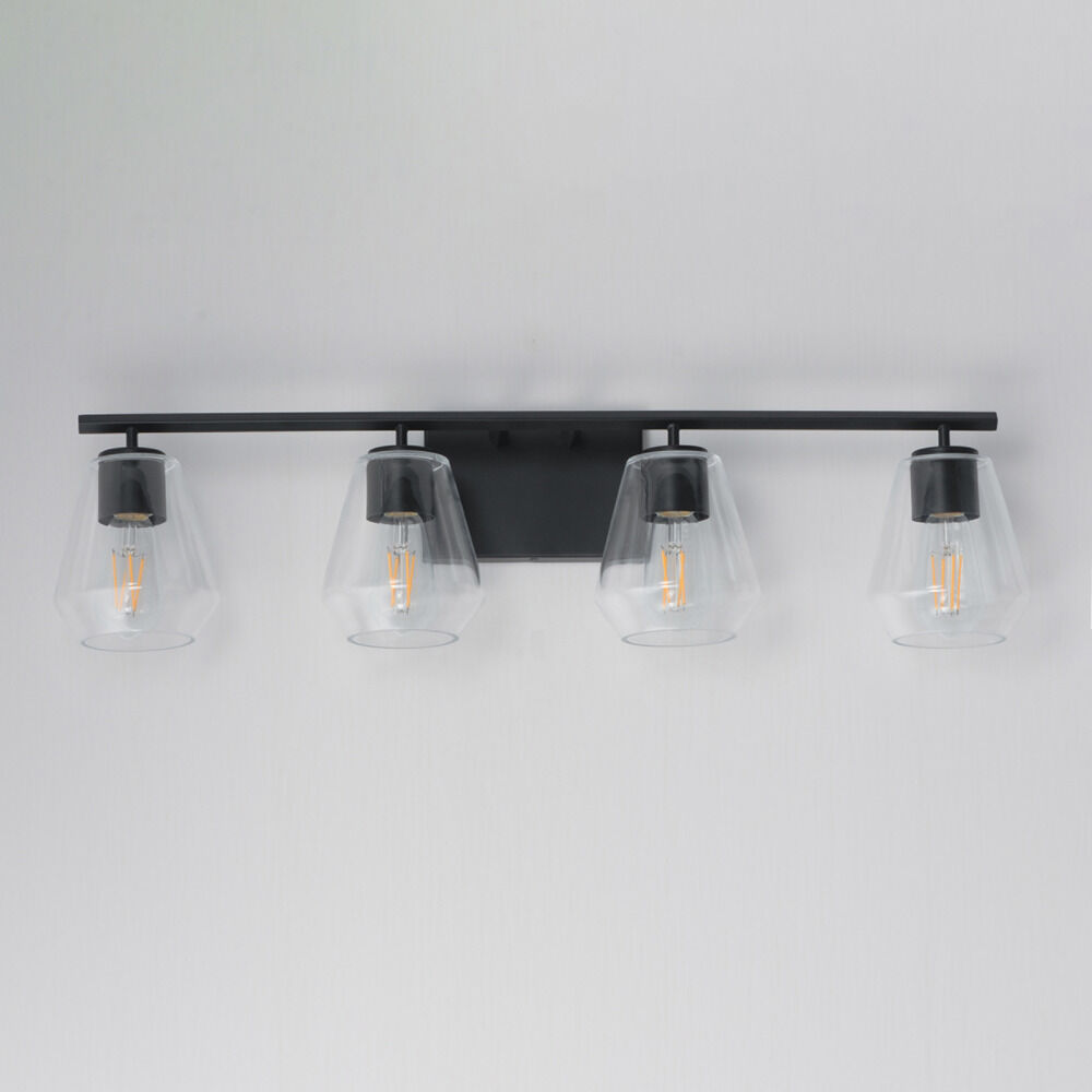 Contemporary / modern black 4-light bathroom light with clear glass shade