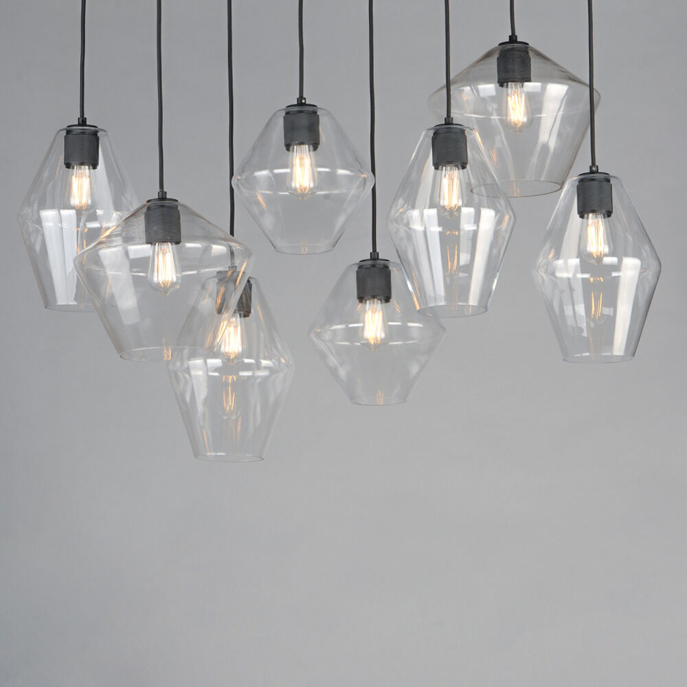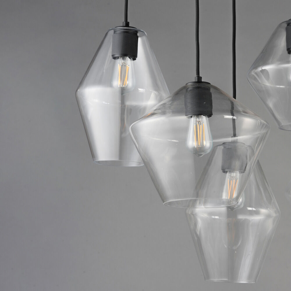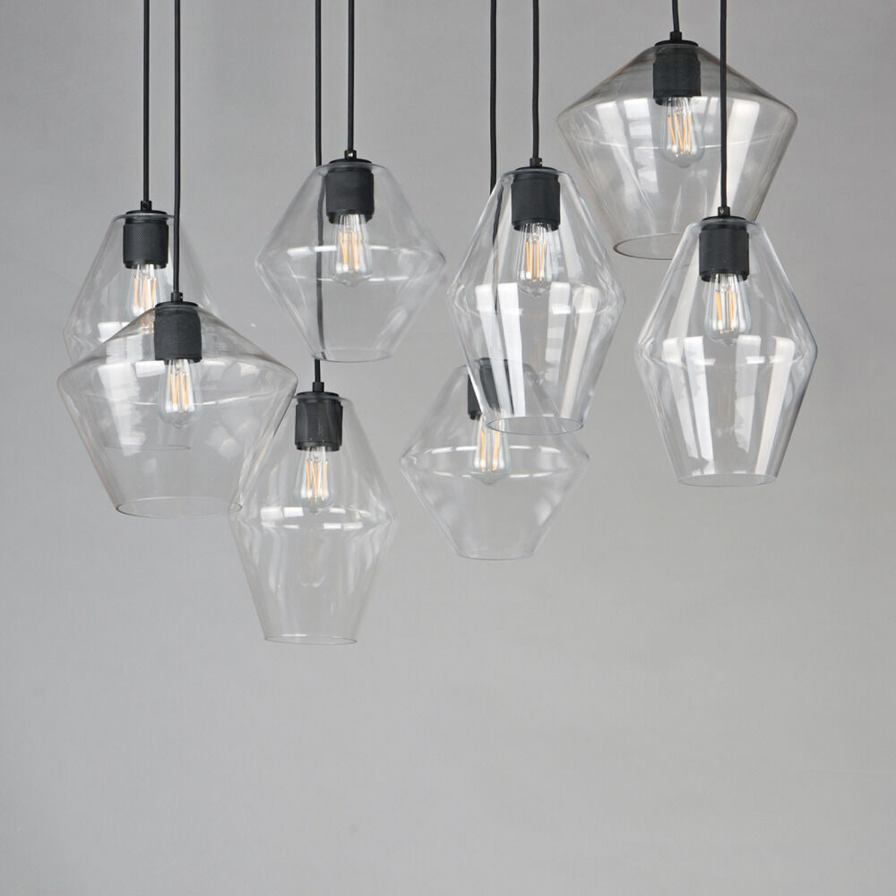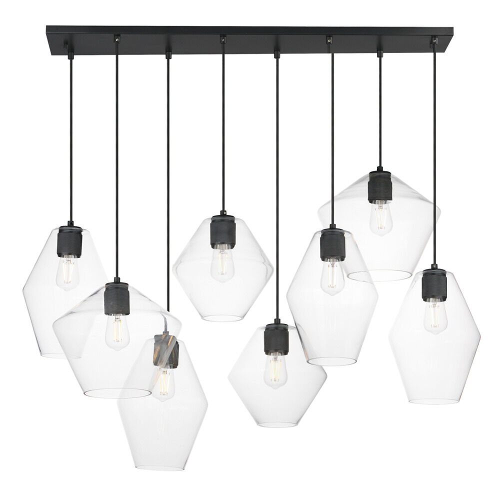 Contemporary / modern black 8-light pendant light with clear glass shade