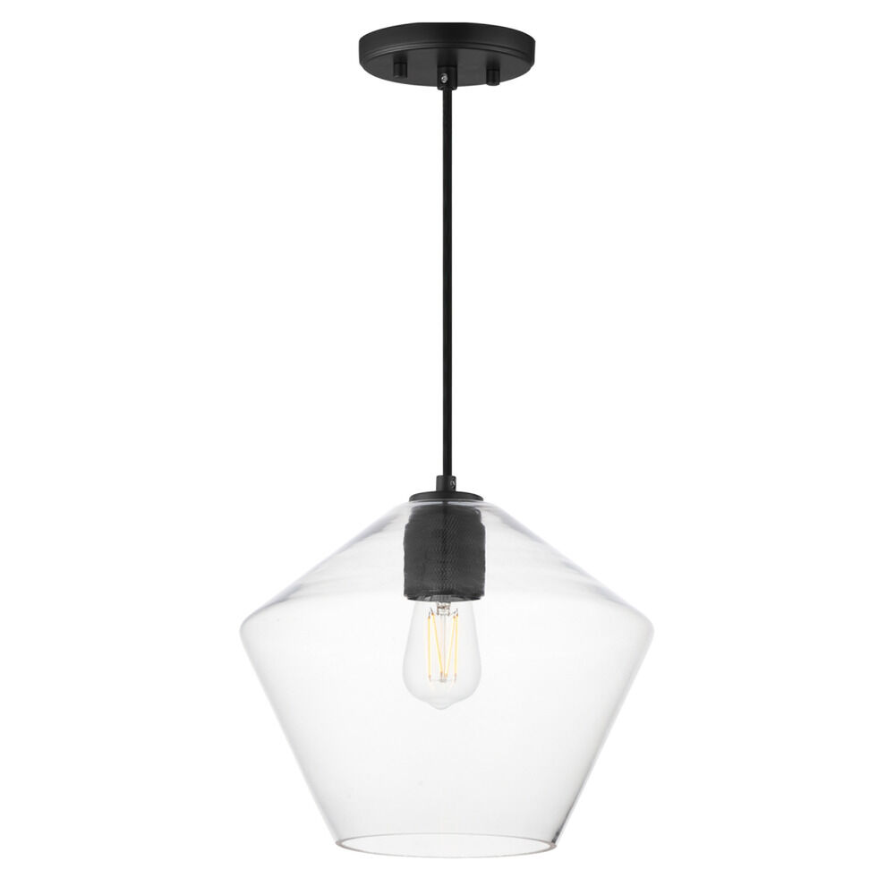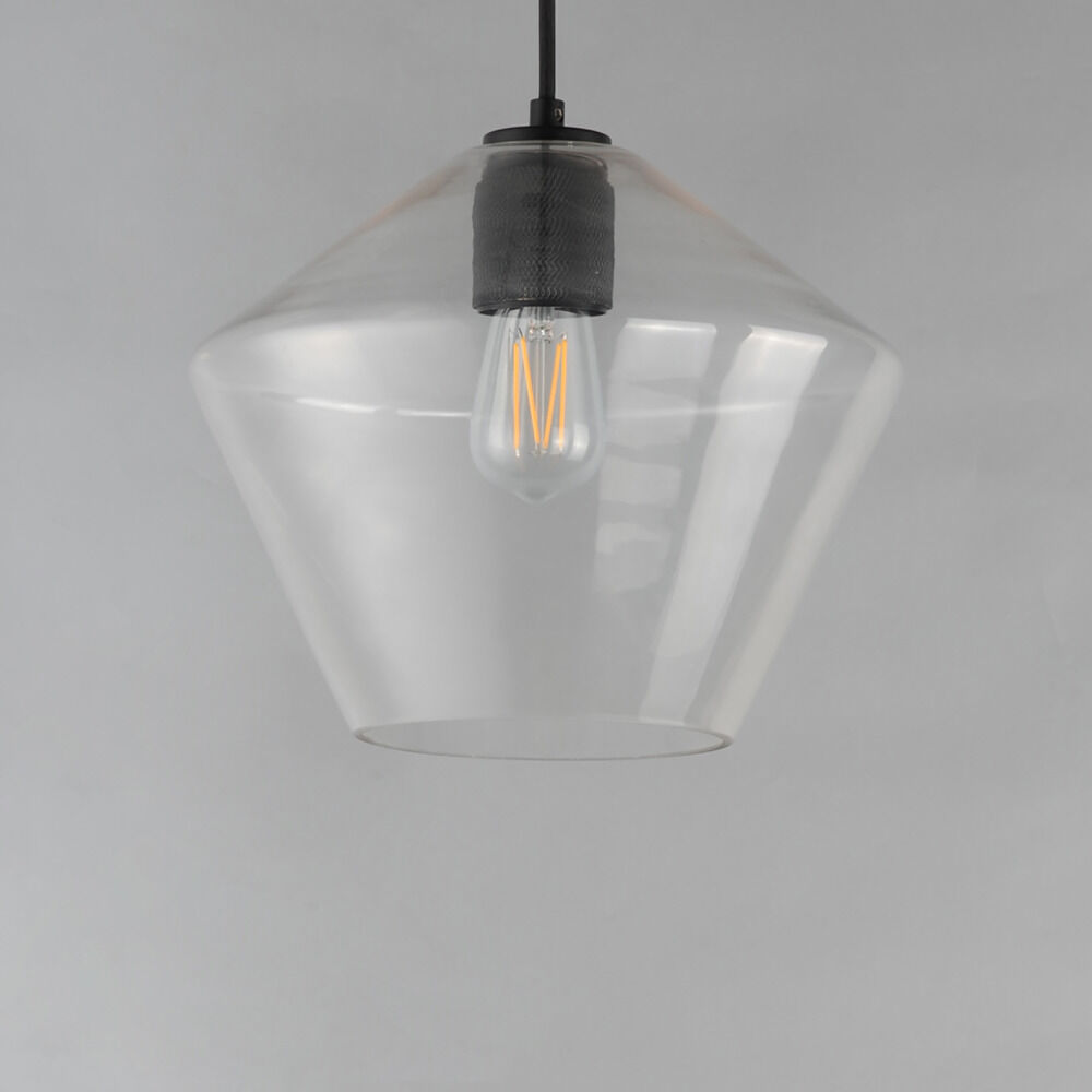 Contemporary / modern black 1-light pendant light with clear glass shade