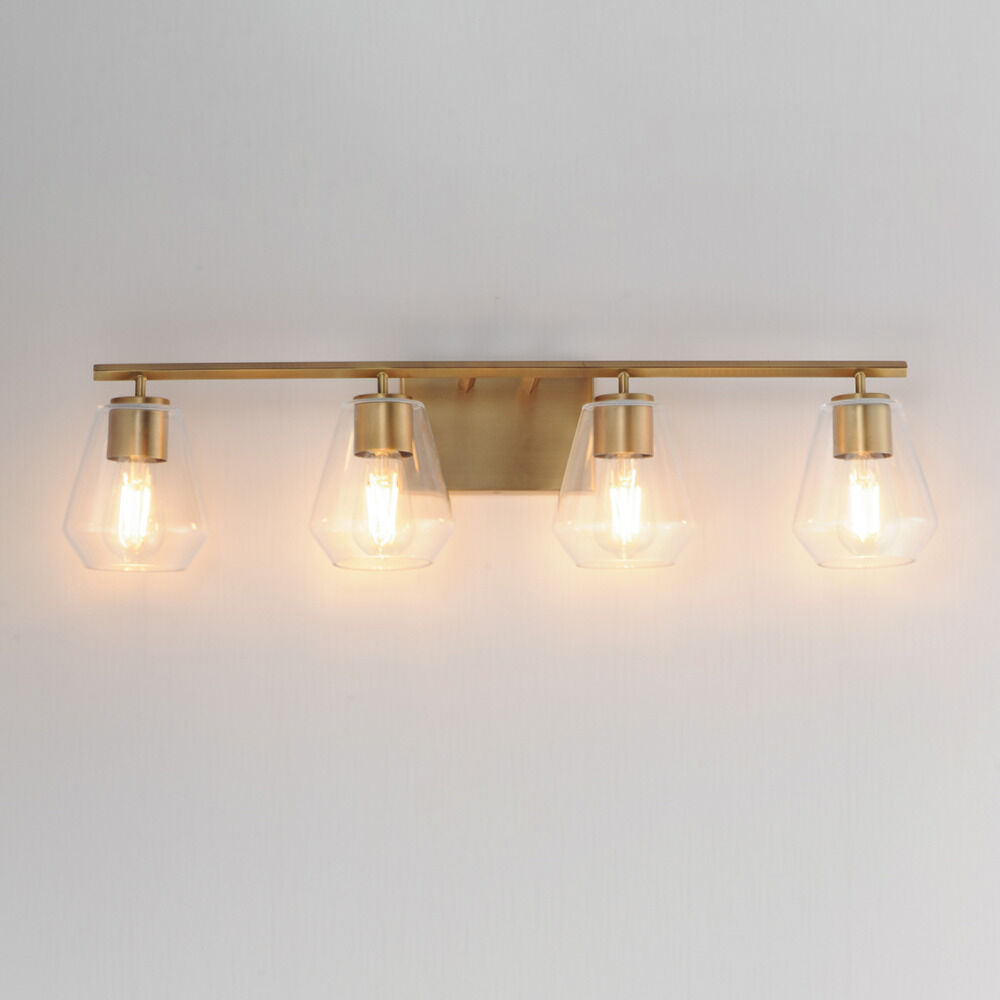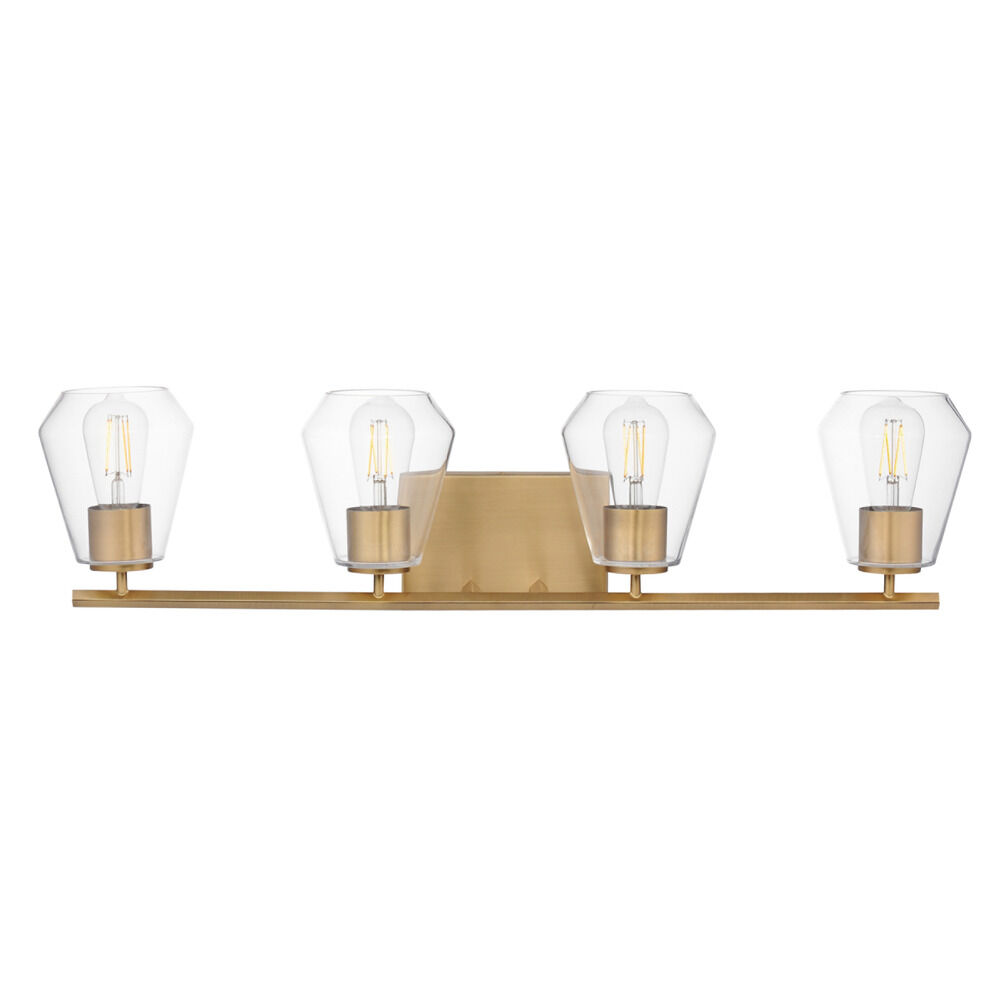Contemporary / modern natural aged brass 4-light bathroom light with clear glass shade