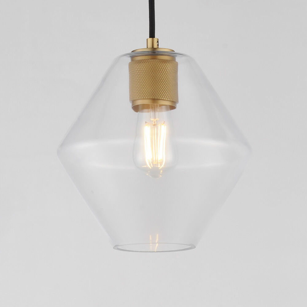 Contemporary / modern natural aged brass 1-light mini-pendant light with clear glass shade