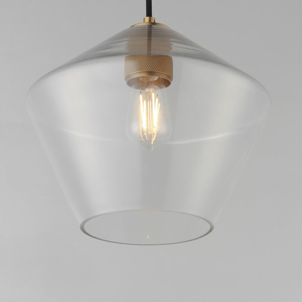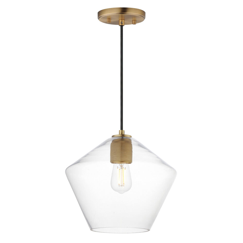 Contemporary / modern natural aged brass 1-light pendant light with clear glass shade