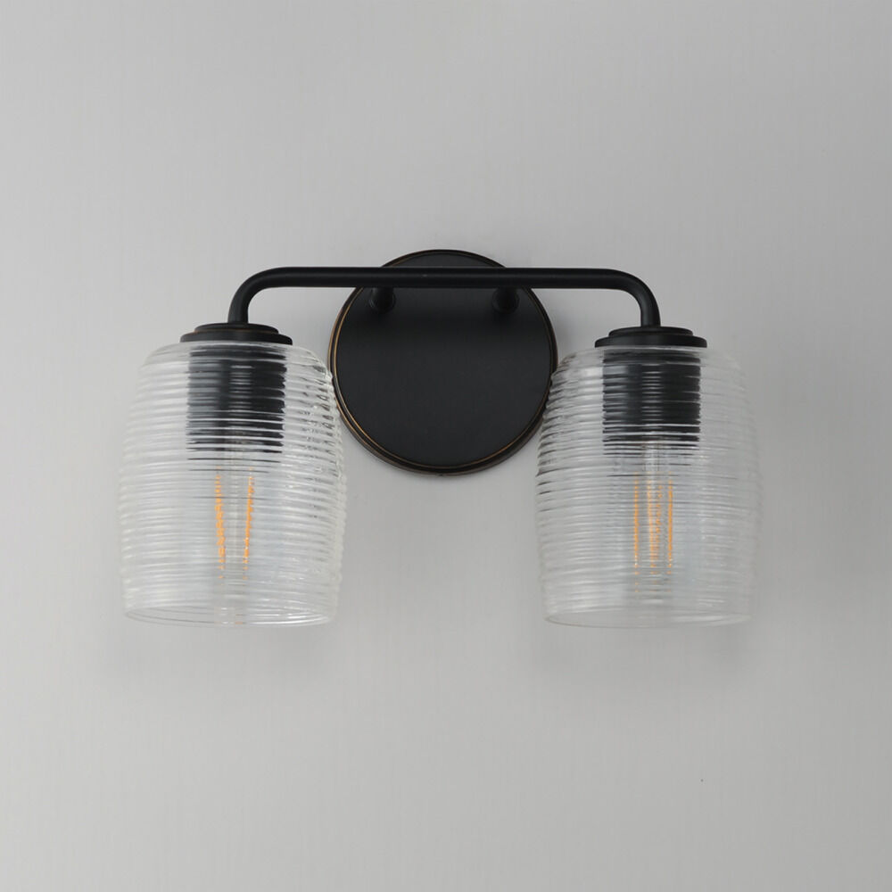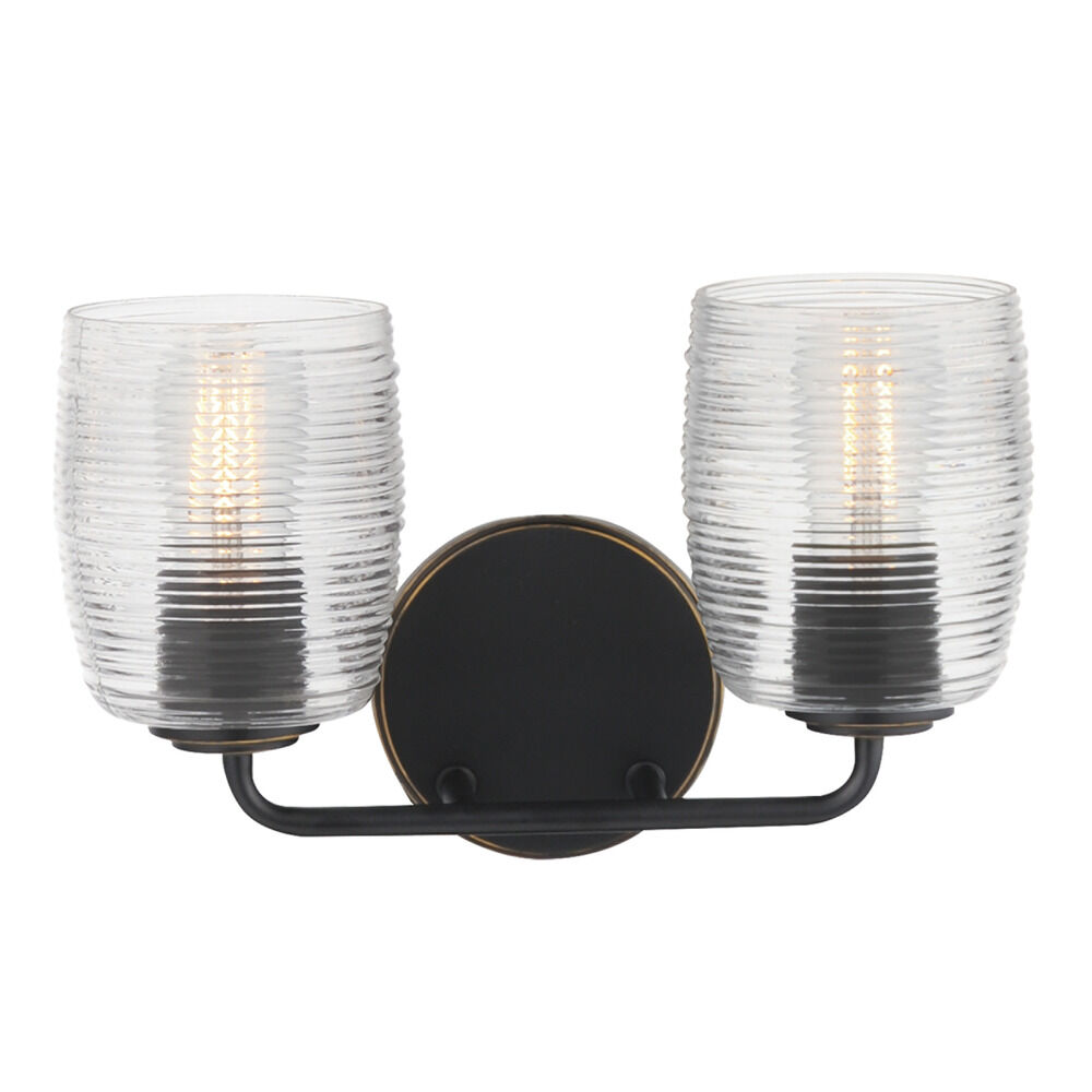 Vintage / retro / industrial kentucky bronze 2-light bathroom light with clear,ribbed clear ribbed glass shade