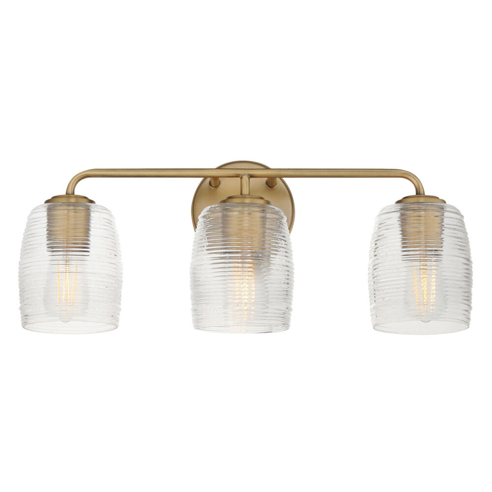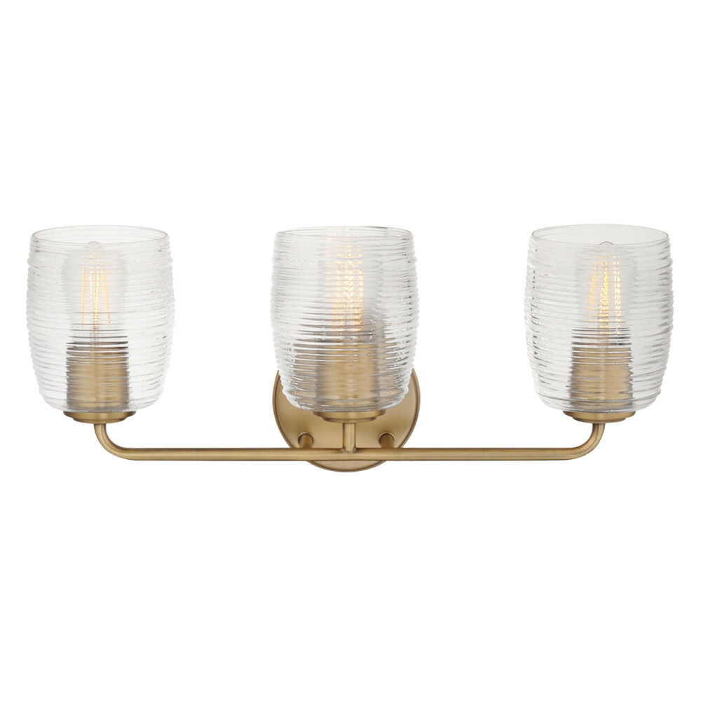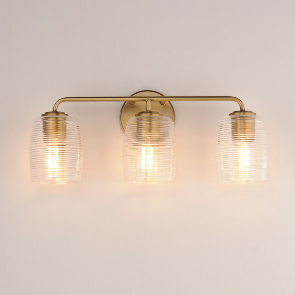 Vintage / retro / industrial natural aged brass 3-light bathroom light with clear,ribbed clear ribbed glass shade