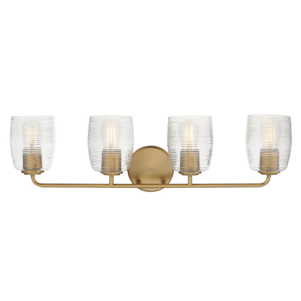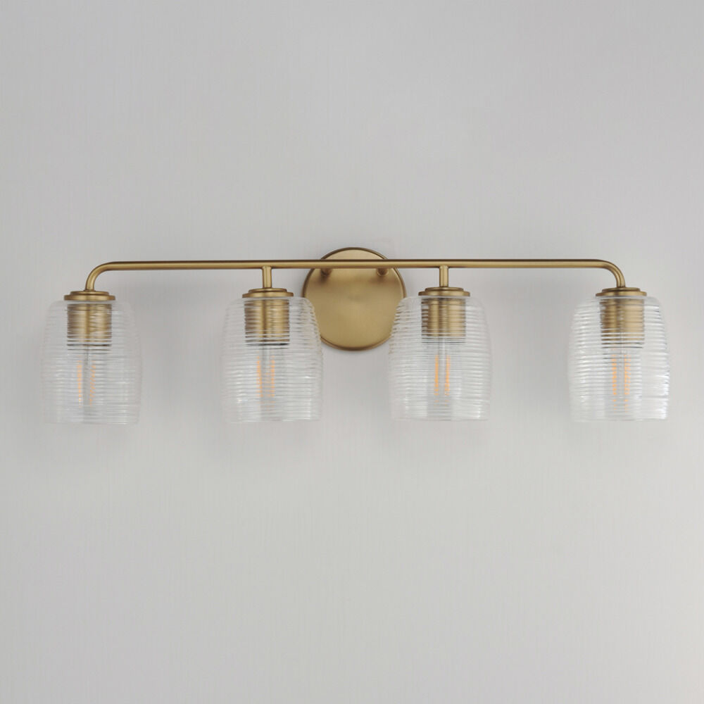Vintage / retro / industrial natural aged brass 4-light bathroom light with clear,ribbed clear ribbed glass shade