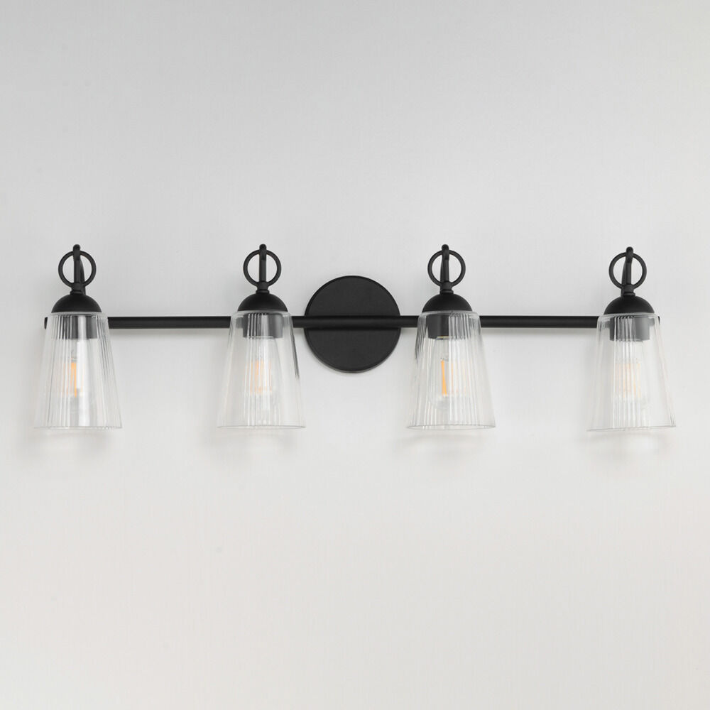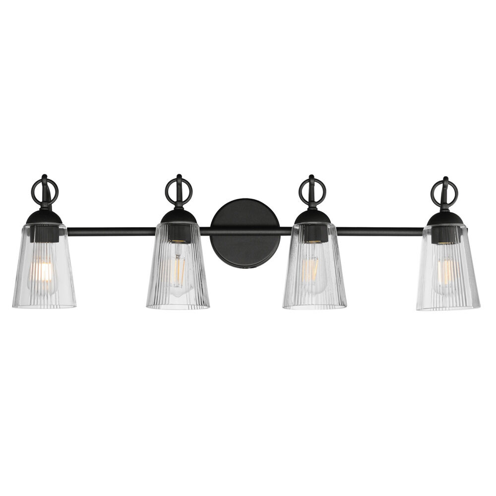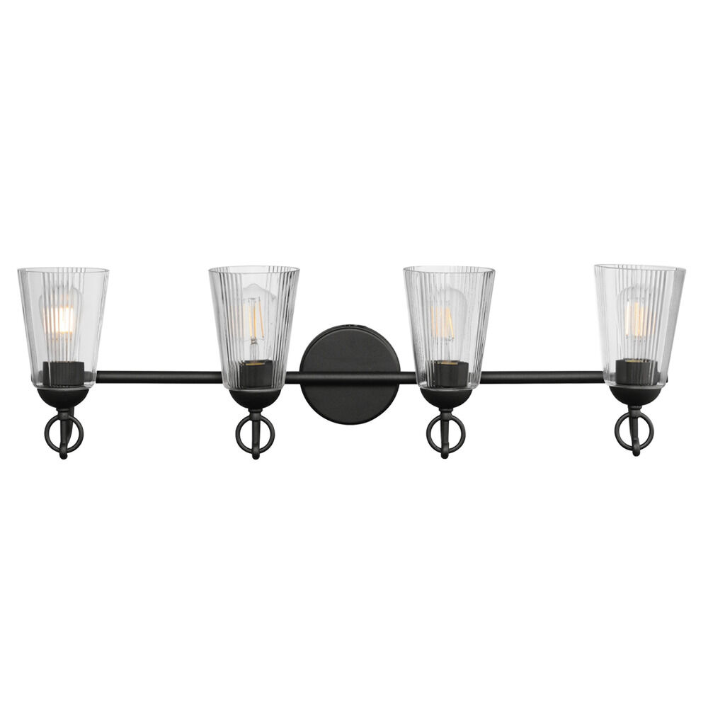 Vintage / retro / industrial black 4-light bathroom light with clear,fluted clear glass shade