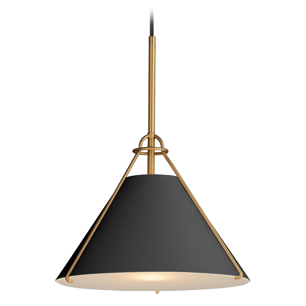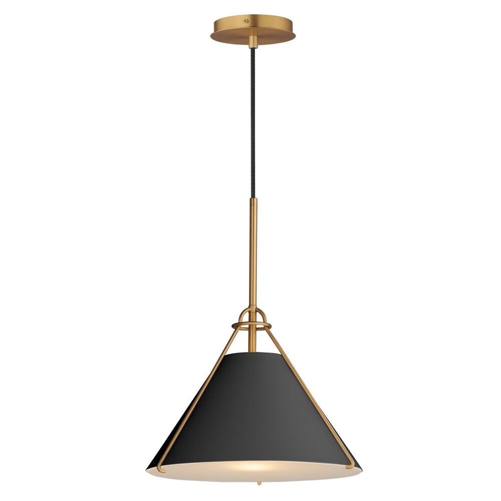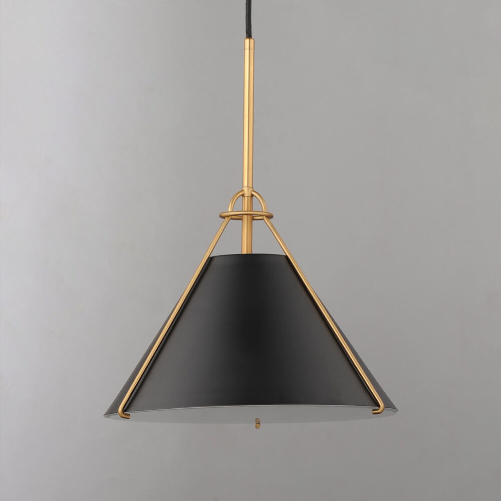 Maxim Lighting Lucas Black & Natural Aged Brass Pendant Light with Conical Shade