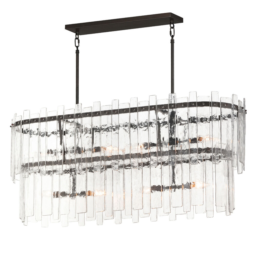Transitional dark bronze 8-light pendant light with clear artisan glass shade