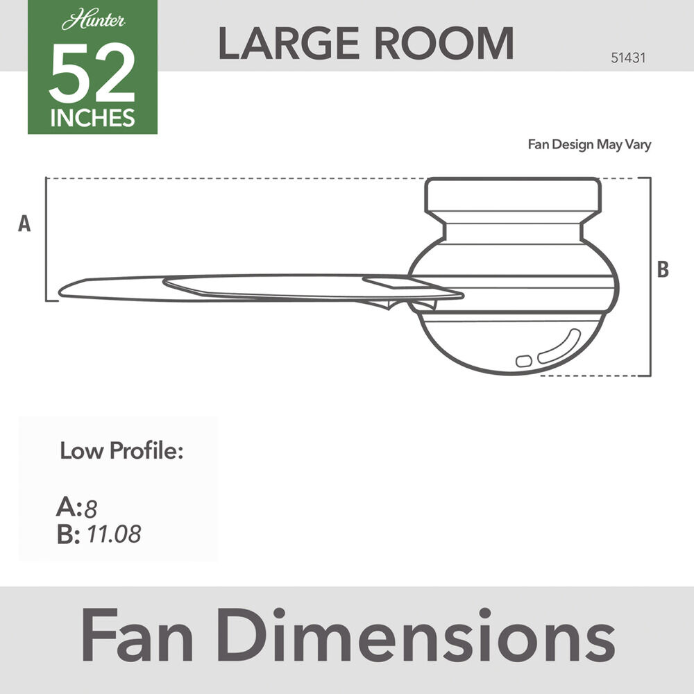 The following are detailed specifications about the Minumus 52-Inch LED Fan in Brushed Nickel by Hunter Fan Company.