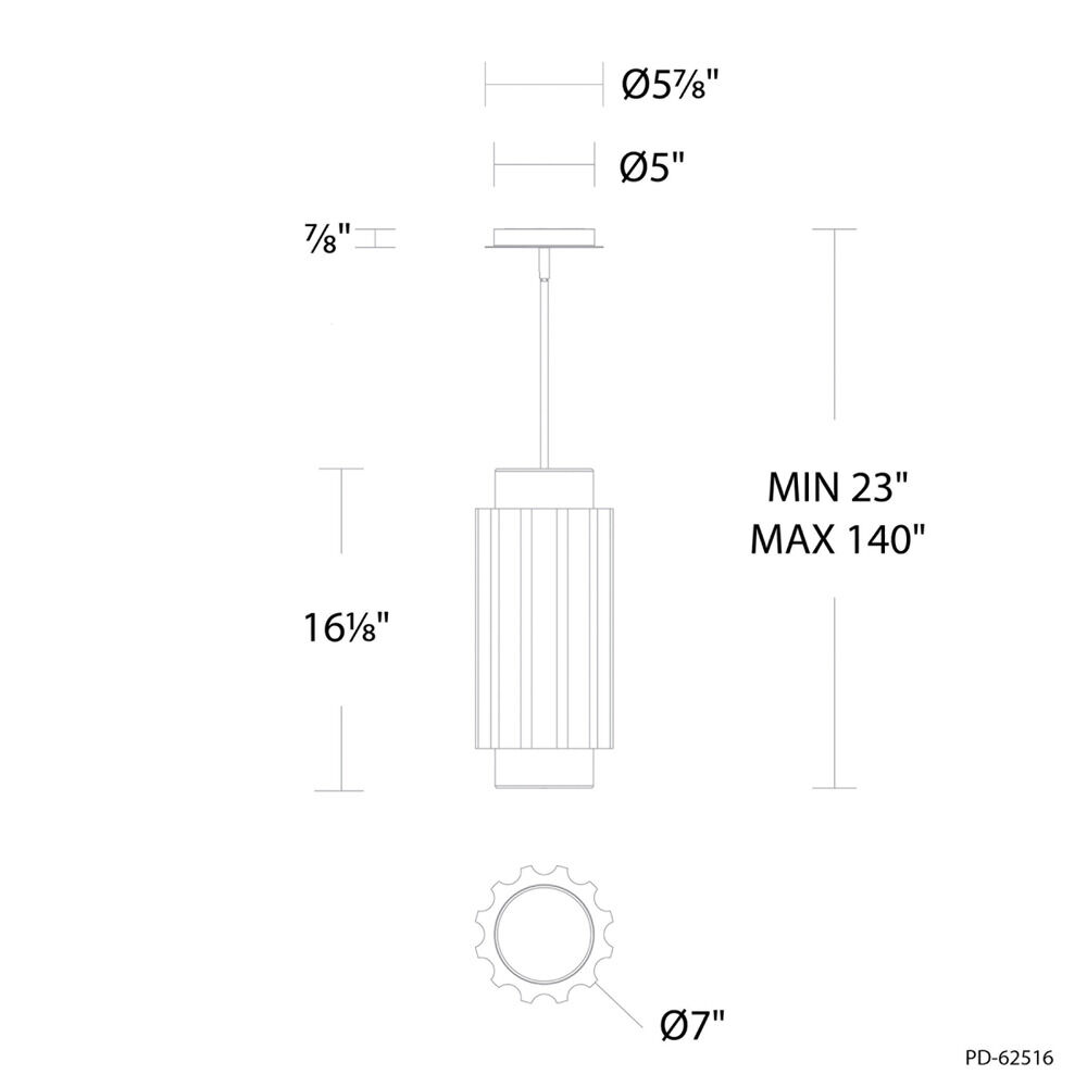 The following are detailed specifications about the Modern Forms Caviar Bassalt Stone & Black LED Mini-Pendant Light with Cylindrical Shade.
