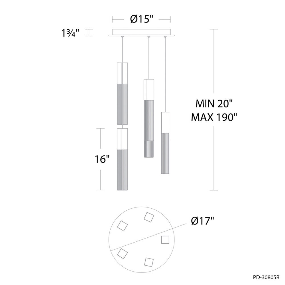 The following are detailed specifications about the Modern Forms Cinema Aged Brass LED Multi-Light Pendant with Rectangle Shade.