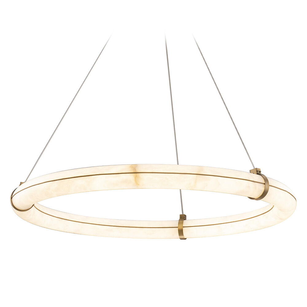 Contemporary / modern aged brass 1-light pendant light with alabaster shade
