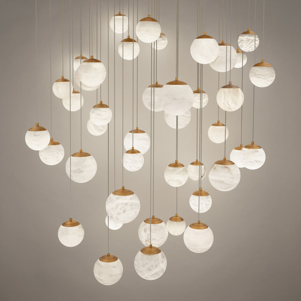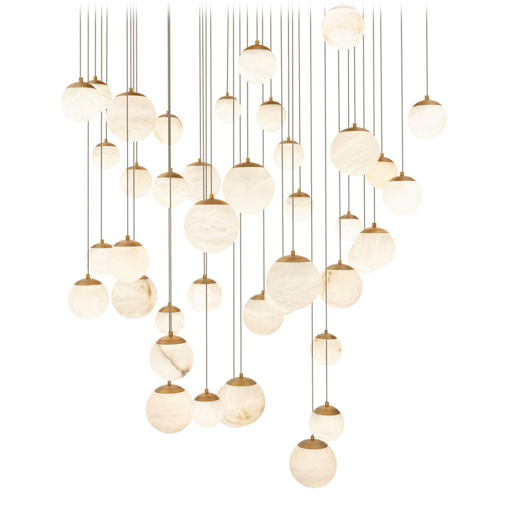 Contemporary / modern aged brass 41-light pendant light with alabaster shade
