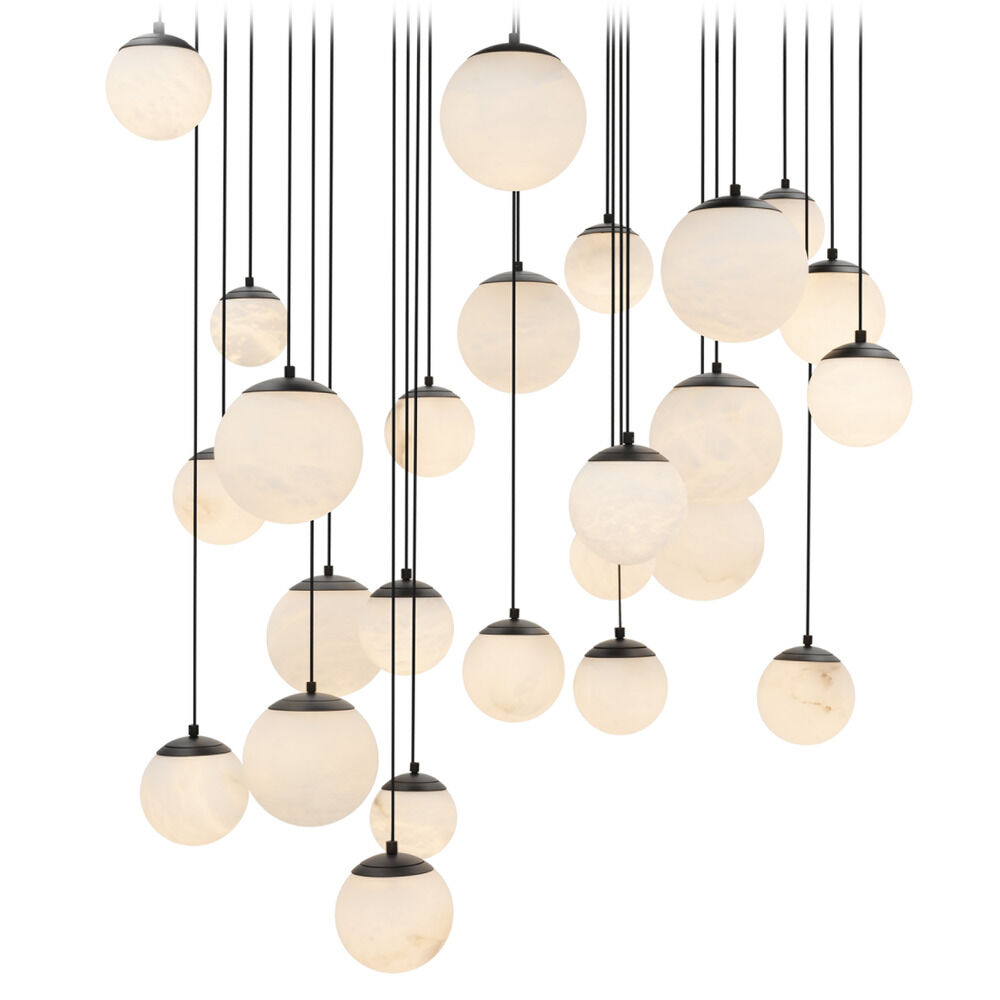 Contemporary / modern black 25-light pendant light with alabaster shade