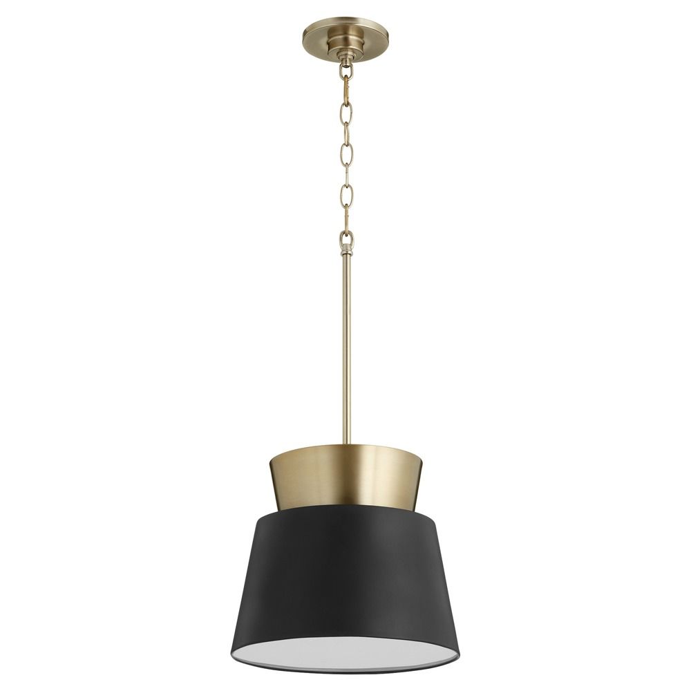 Noir / Aged Brass Pendant with Empire Shade by Quorum LightingManufacturer: Quorum Lighting Model #: 8006-6980 Noir / Aged Brass Pendant with Empire Shade by Quorum Lighting